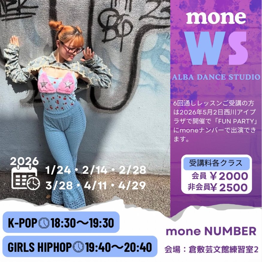 ALBA DANCE STUDIOの人気インストラクターmoneによる特別ワークショップが、2026年1月から4月にかけて開催されます。