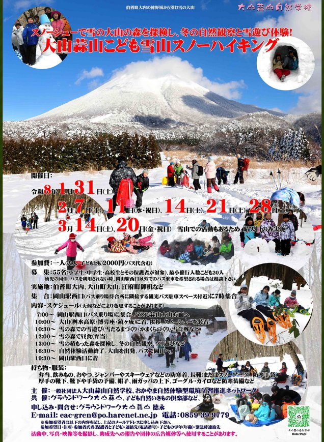 | イベント名 | 大山蒜山こども雪山スノーハイキング |