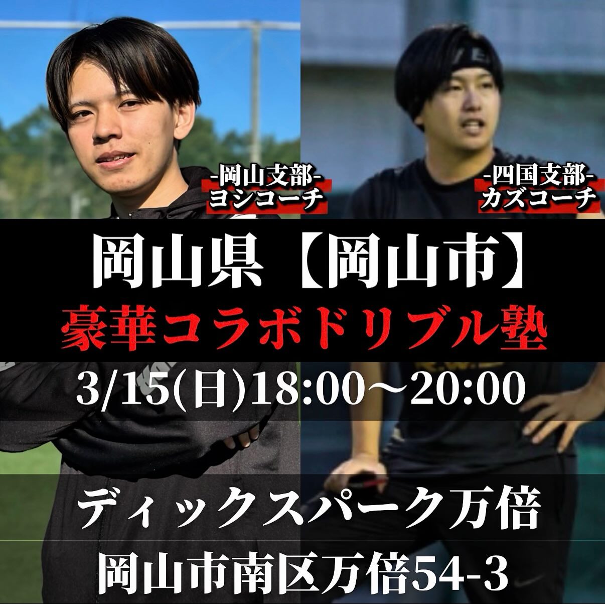 岡山支部代表のヨシコーチとのコラボが実現する「豪華コラボドリブル塾」が岡山市で開催されます。