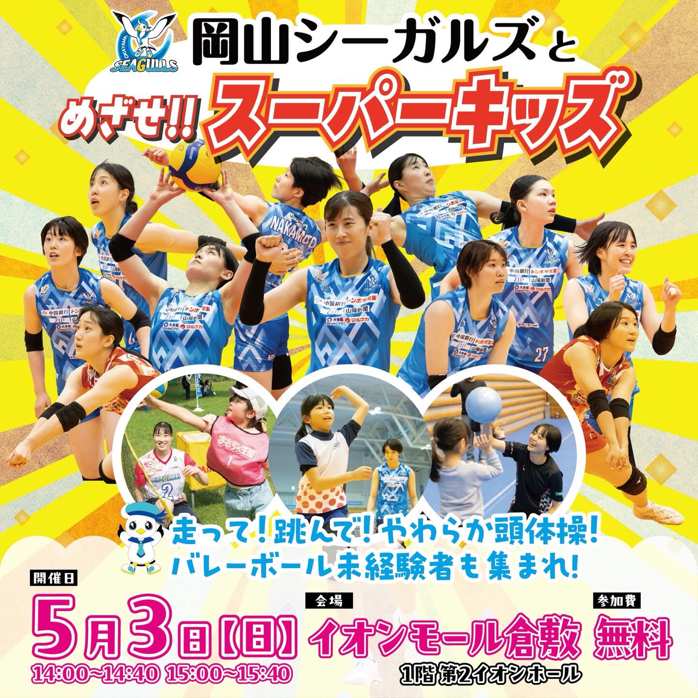 この記事では、2026年5月3日にイオンモール倉敷で開催される「岡山シーガルズとめざせ!!スーパーキッズ」について紹介します。